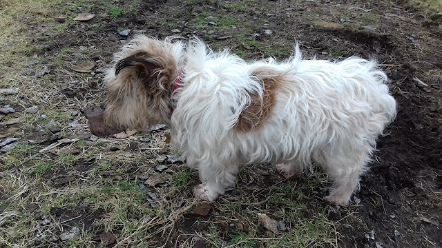 Wilma looking for a suitable place to bury her prized pig's ear, she made such a good job that it has never been found again !